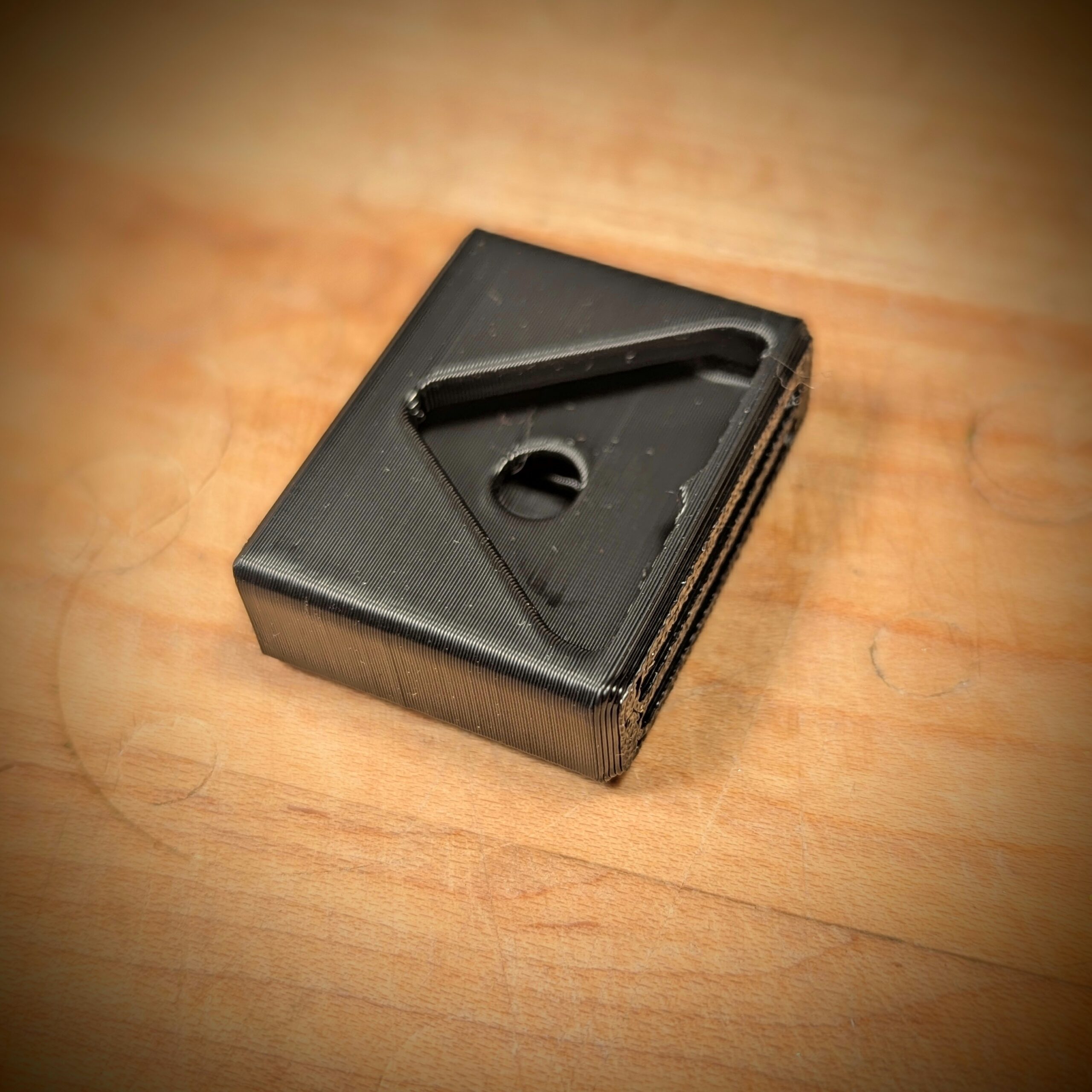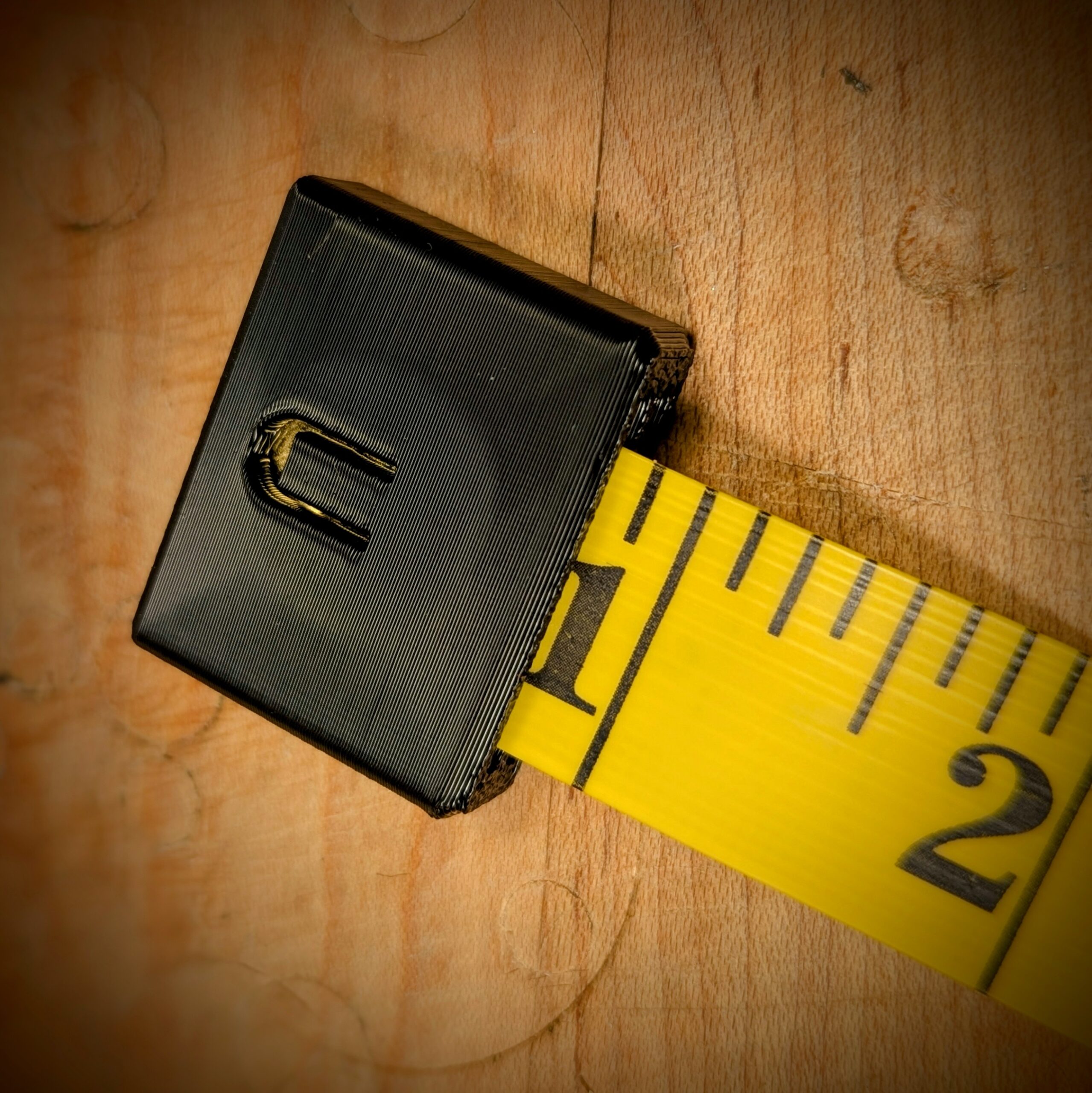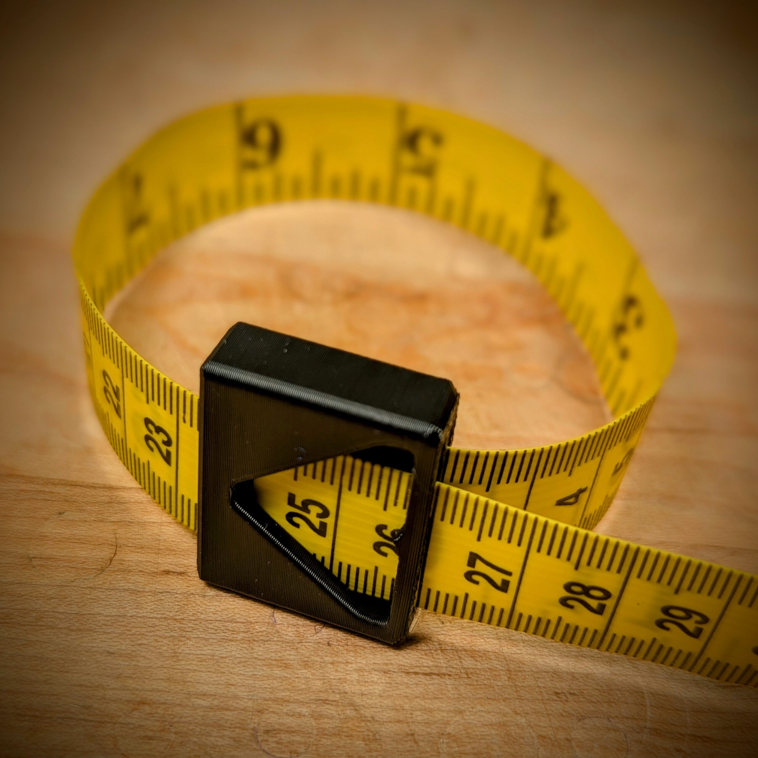 If you’re printing your own measuring tool, for the best results, print the tool with the triangular measuring window pointing up, with the two open slots on the print bed. For best alignment, if you have a tape measure that’s less than 15mm wide, use the first download option below, otherwise use the second for wider tape measures. You’ll also need a measuring tape (max 15mm or 25mm wide, depending on the model you use) and potentially a few pieces of standard paper.